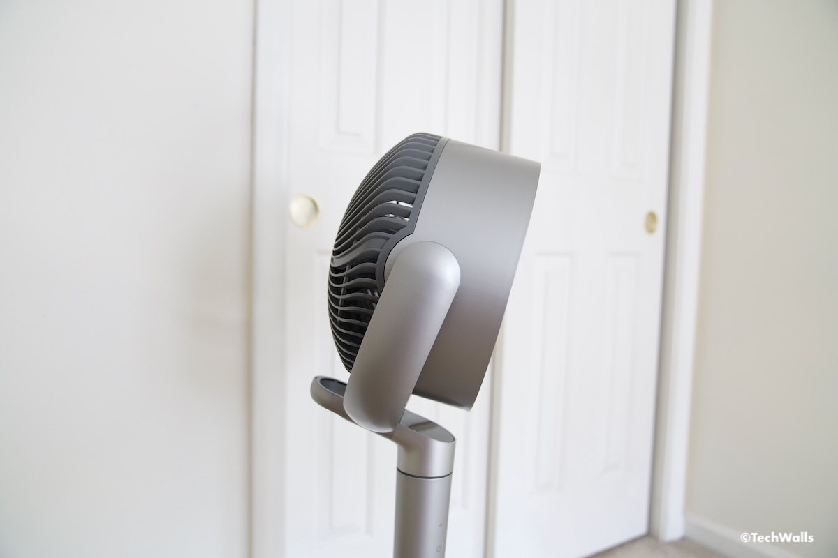 The Dreo PolyFan 704S still features a sleek and modern design; It is available in two colors, rose gold and matte silver, making it a stylish addition to any room decoration. The fan is easy to assemble as it took me just a couple of minutes with no extra tools. The fan’s build quality is impressive, with a solid feel that suggests durability. As compared to the 513S, the 704S looks very similar but there are some subtle changes. For instance, all control buttons are moved to the pole and there is a handle so that you can carry the fan around easier. However, the new fan looks a bit plasticky; I still prefer the look of the 513S with faux leather accents on the support bar.