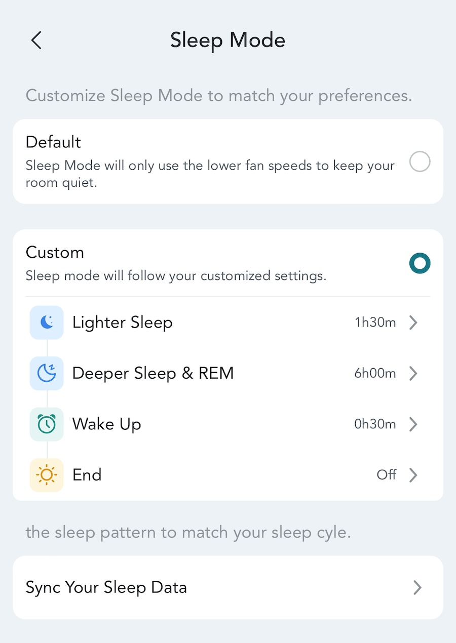 The purifier’s Sleep Mode is a unique feature to enhance sleep quality through personalized sleep profiles, synchronization with sleep patterns, sound level monitoring, and lighting effects. It is also compatible with Apple Health, so it can adjust purification modes in real-time according to your sleep cycles and optimize air quality for better sleep health. This feature is not important for me because I feel uncomfortable wearing my Apple Watch when sleeping and the air quality in my room is pretty good during the night.