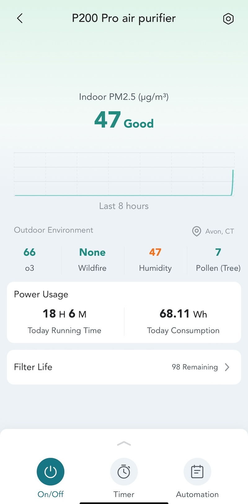 While the initial purchase price of around $150 makes the P200 Pro a mid-range air purifier, its maintenance cost is reasonable. The replacement filter, costing about $38, needs to be replaced every 3–6 months depending on use, which is a standard interval for air purifiers in this category. The variety of filter choices, including Original, Pet Care, and Smoke Absorber, allows for customization according to specific needs, enhancing the device’s value proposition.