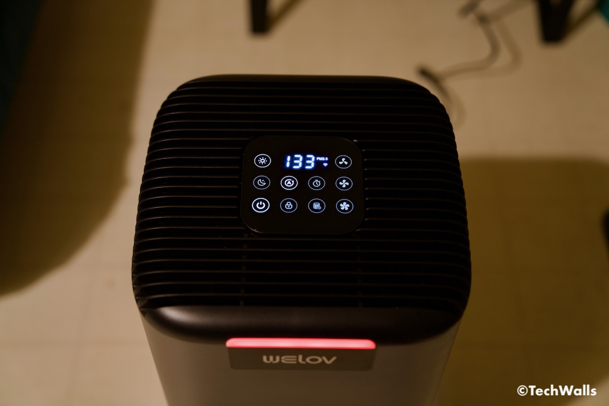 The WELOV P200 Pro is designed to blend with the modern home environment. It has good build quality although the exterior is made mostly out of plastic. There are LED lights on top and bottom while all touch control buttons are placed on top. You totally can start the air purifier immediately without pairing it with your phone and connecting it to your network.