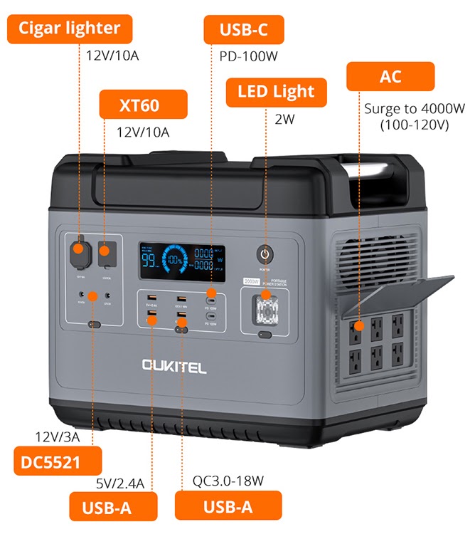 AC Output of 2000W, Surge to 4000W – Capable of recharging 99% of your devices