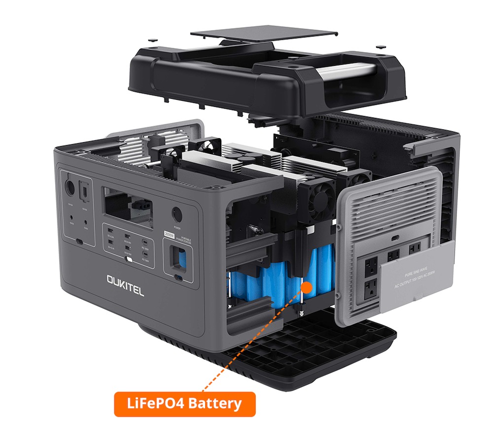 The power station uses 48 brand-new LiFePO4 battery packs from EVE Energy Co., Ltd (one of TOP 3 Power Suppliers in China with business customers like BMW, Jaguar, Land Rover, etc.). As compared to traditional Lead-Acid battery, LiFePO4 is much safer and lasts longer.
