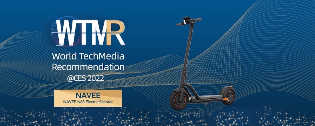 2022 World Tech Media Recommendation (a.k.a CES TECH Award), referred to as “WTMR @CES 2022”, was scored by a jury consisting of more than 20 top-notch tech journalists in terms of product innovation, performance, specifications, cost-effectiveness, convenience, and appearance. This year, the team has reviewed 148 technology products and selected 15 outstanding products, NAVEE N65 electric scooter included, and NAVEE brand was awarded innovative brand among over 100+ brands.