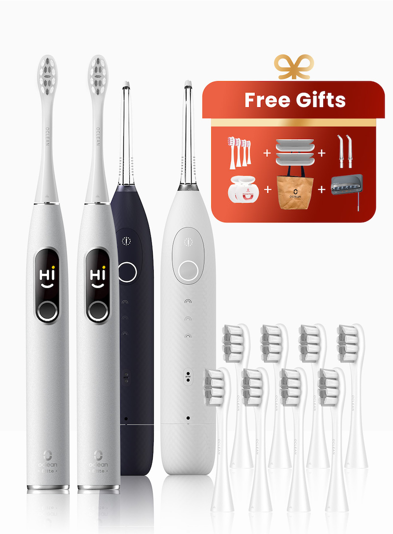 - Free Gifts ($120 value): 4x Brush Head Refills, 2x Travel Cases, 2x Arc Nozzles, 2x Oclean Dental Floss, 1x Oclean Tote Bag, 1x Oclean S1 Sterilizer