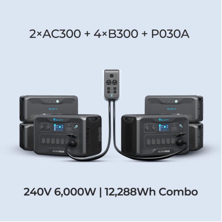 - Bluetti AC300 is 100% modular. It can reach the total of 12,288Wh after connecting to four B300 battery modules.
