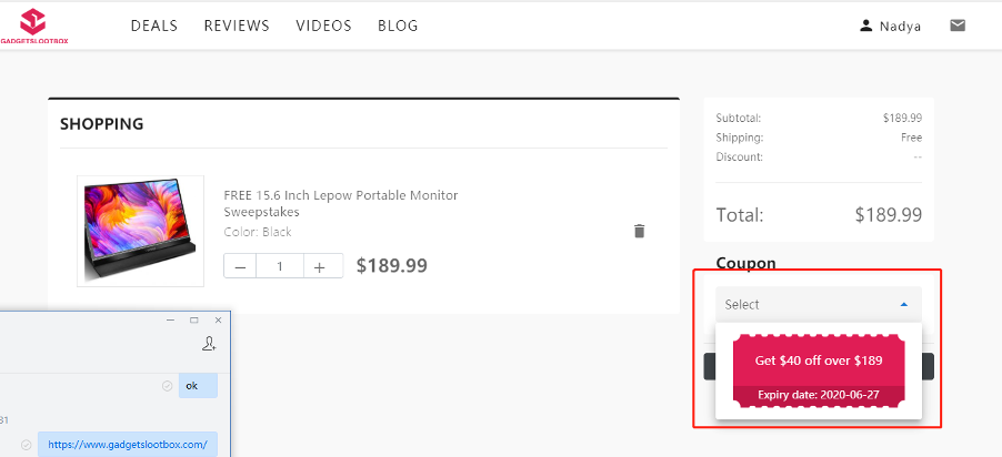 When you visit the website Gadgetslootbox, you will immediately see the promotion but you need to register to receive the $40 coupon.