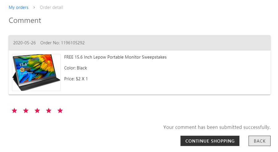 This is an important step. You will need to go to My Orders, then click on Comment Now to leave a review. Make sure to post the review from June 27th to July 9th.