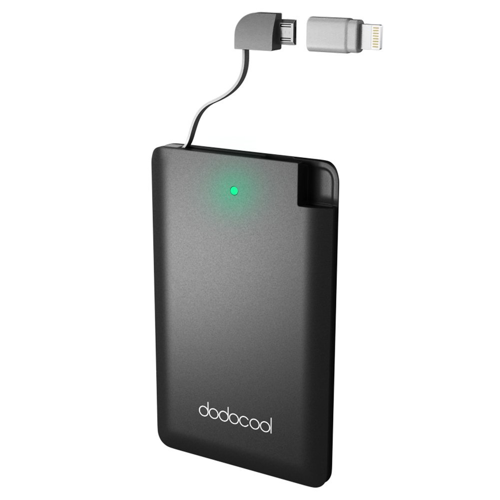 dodocool MFi Certified Ultra Thin 2500mAh Portable Charger Backup External Battery Pack Power Bank with Built-in Micro USB Cable and Lightning Adapter – 50% OFF