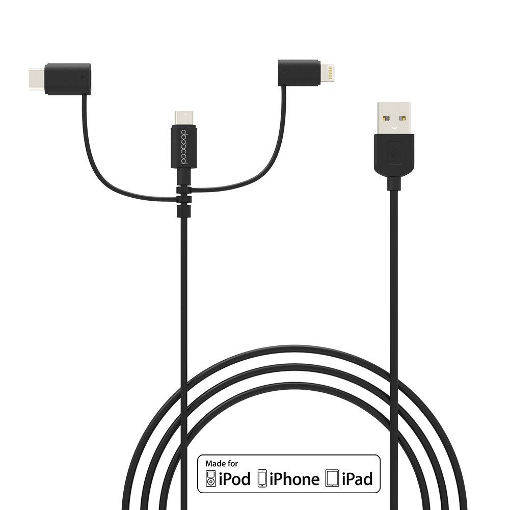 dodocool MFi Certified 3.3ft/1m 3-in-1 Nylon Braided Micro-USB to USB 2.0 Cable with Lightning and USB Type-C Adapter Charge and Sync – 50% OFF