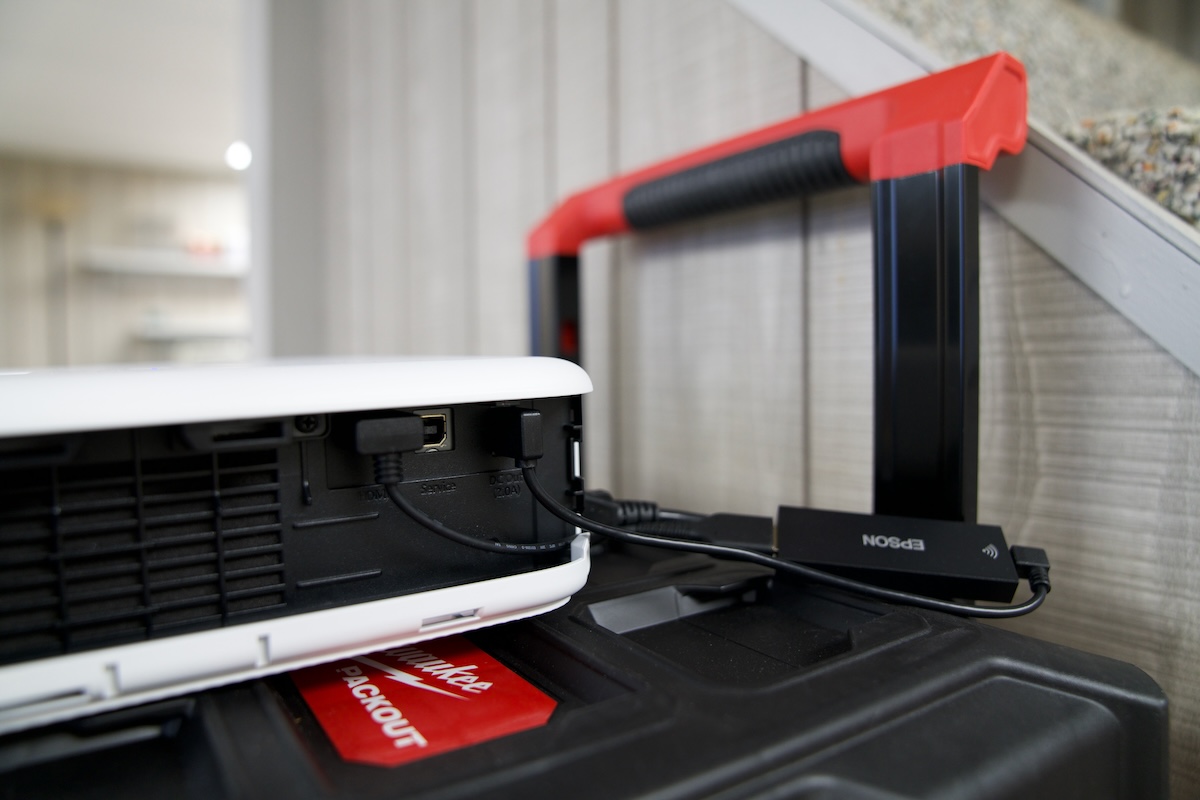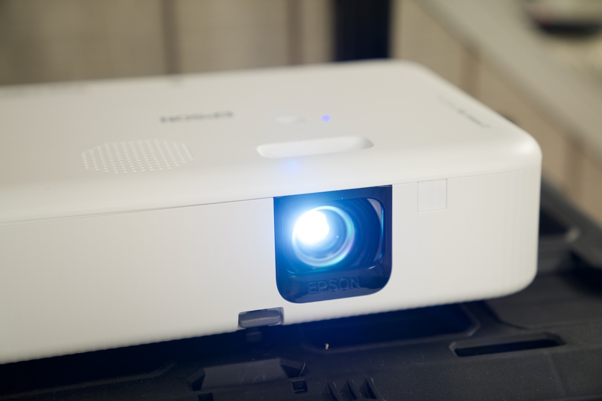 The Epson also lacks features like optical zoom and lens shift, which are common in higher-end projectors. Adjusting the image size requires physically moving the projector, and while digital zoom is available, it reduces brightness and image quality. On the plus side, the auto keystone correction feature works well, automatically adjusting the image to maintain a rectangular shape when the projector is tilted.