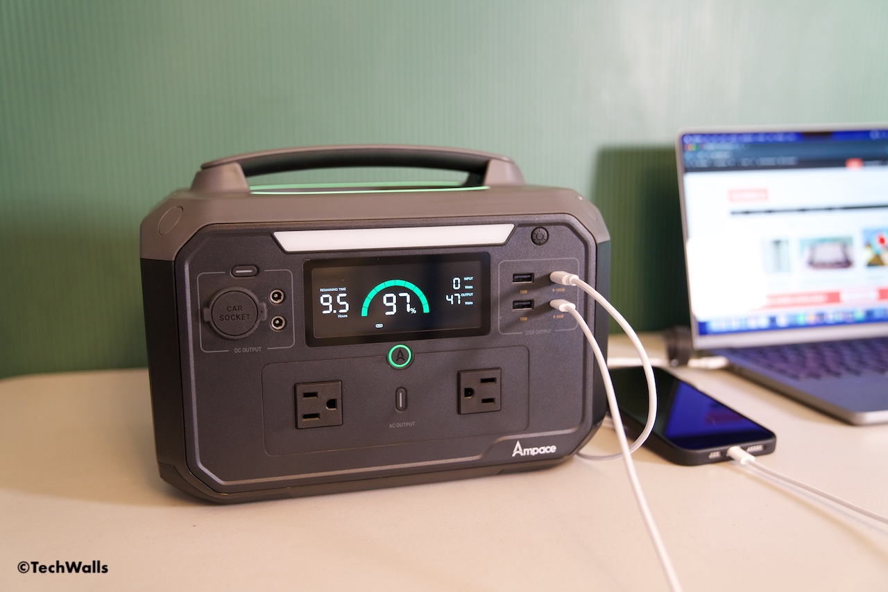 I tested the 2 USB-C ports to recharge my iPhone and MacBook but they don’t output 60W and 100W as expected, therefore, I still need to use my fast charger plugged to the AC port. I tried it with my workstation including the MacBook and a 5K 27-inch monitor and it could last approximately 6 hours.