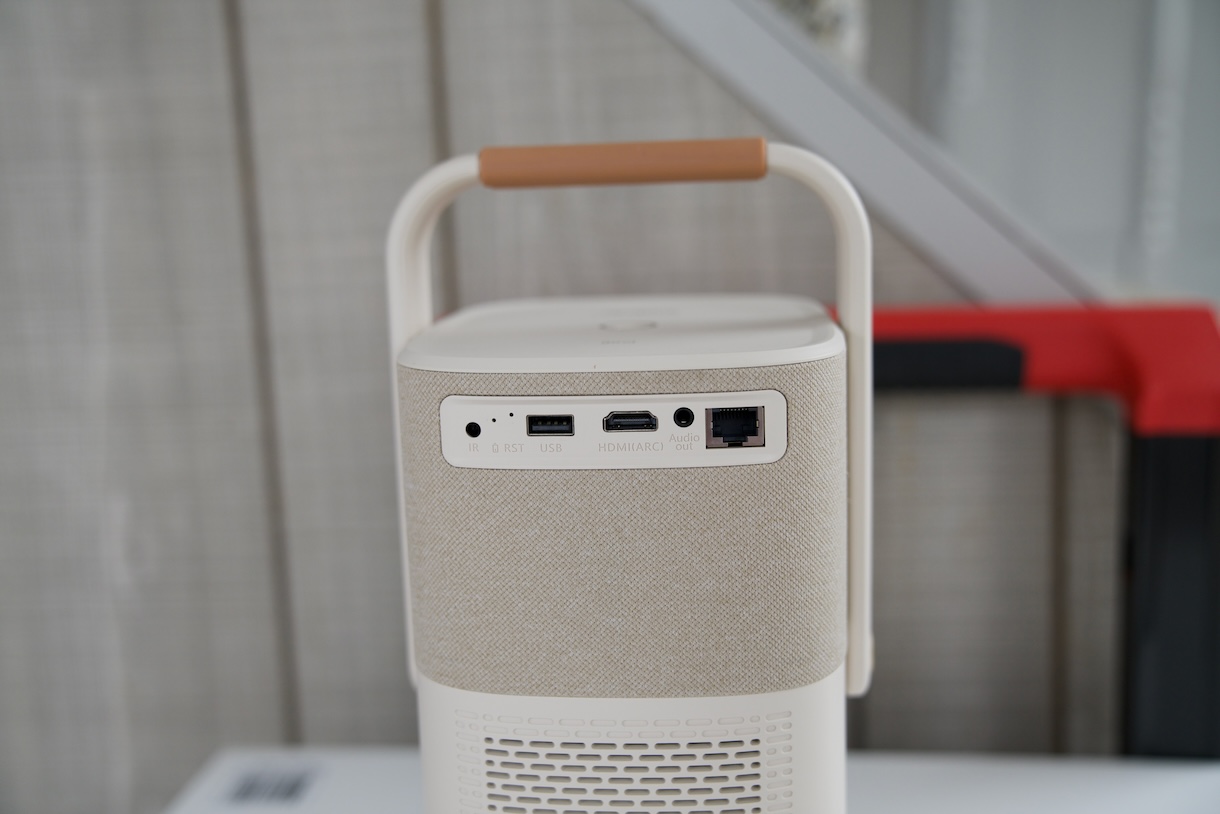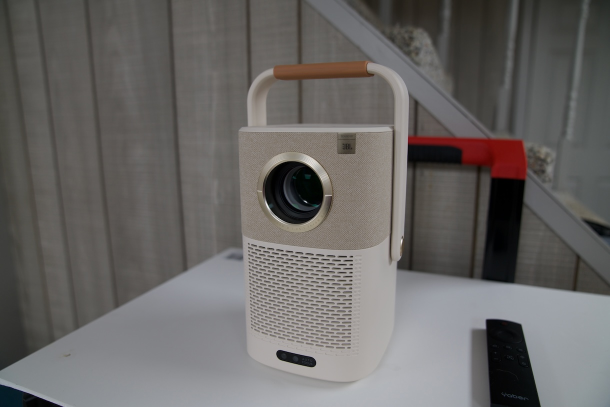 The T2 Plus sports a cream-colored, retro aesthetic with gold accents and a fabric-covered speaker grille. Its solid plastic build feels reliable, while the rotating handle doubles as a stand, allowing for convenient adjustments to projection height. However, at 5.5 pounds and dimensions of 11.4 by 5.5 by 6.5 inches, the T2 Plus is bulkier than many competitors, limiting its portability.
