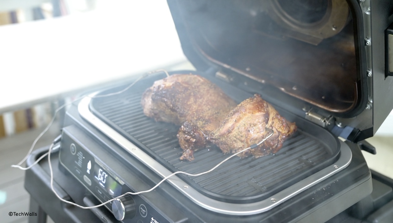 I’ve tried different dishes with the Ninja grill, like Teriyaki chicken, smoking ribs, lamb leg, or brisket, it delivers consistent and delicious results. During testing, the grill function produced evenly cooked chicken thigh, Boston butt, lamb leg with those desirable grill marks that everyone loves. I love the Smoker function as I can slow cook the meat and have more time to get it smoked. A half cup of pellets can last up to 30 minutes and you can refill the tray when they burn out. I use the cheap Pit Boss pellets from Walmart and they still give amazing results for every cooking session.