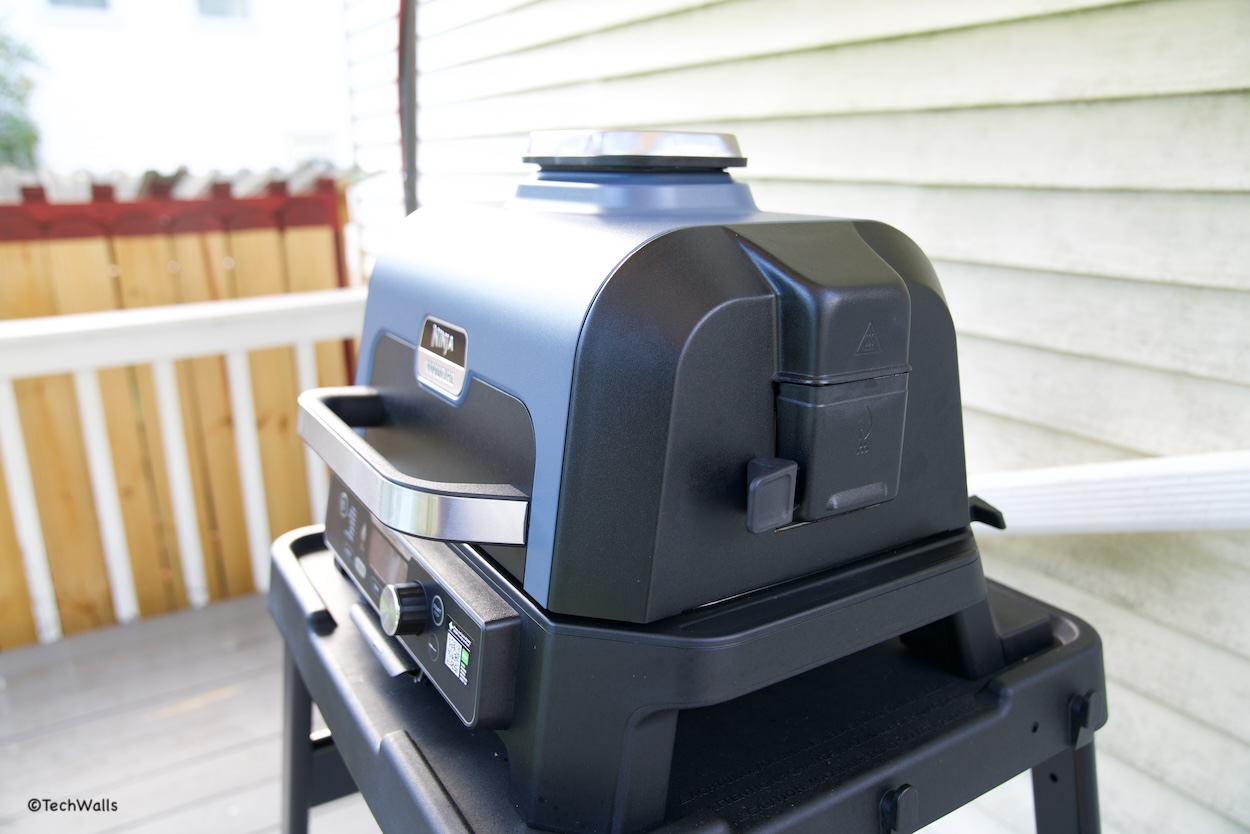 The Ninja Woodfire looks quite modern and compact. It measures 22 x 20 x 16 inches and weighs nearly 39 lbs, it is much more portable than most outdoor grills on the market. I tried it with different stands and outdoor prep tables; Finally I ended up using the official Ninja’s stand because it fits the grill perfectly and it is also easy to clean. The stand has a large opening on top, so I don’t need to wipe away water after rains.