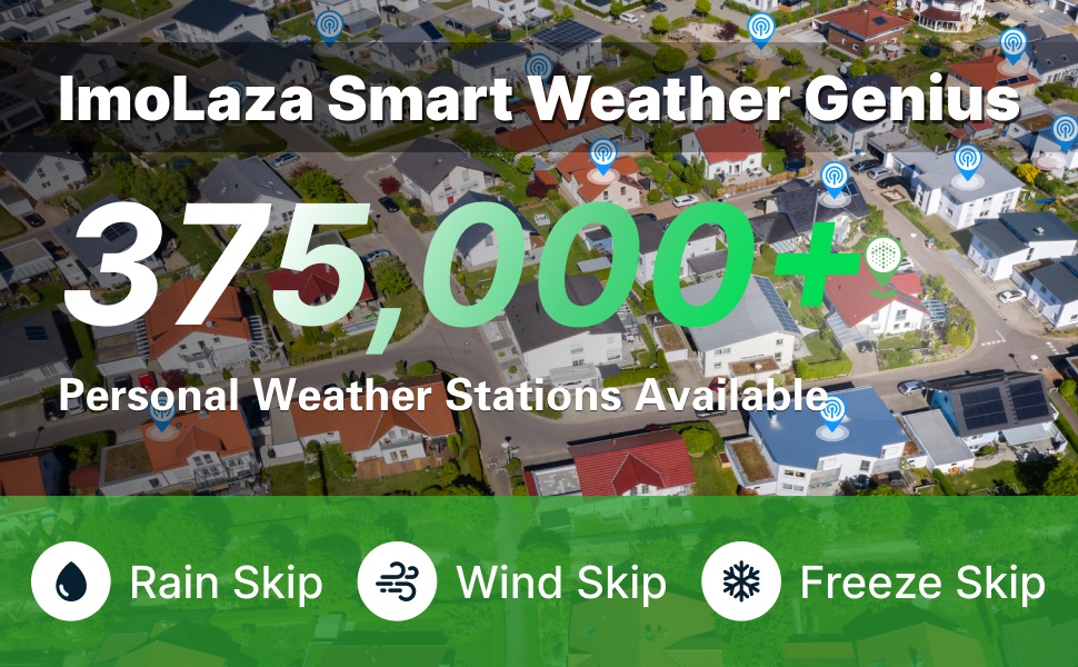 ImoLaza boasts the world’s most advanced smart weather forecasting and monitoring system. This intelligent weather system seamlessly integrates meteorological satellite data from National Weather Service, radar data from Local Meteorological Departments, and real-time data from 375,000 Personal Weather Stations. It continuously monitors and forecasts various weather indicators in your area, including temperature, wind speed, sunlight intensity, and precipitation. With ultra-precise meteorological data, it avoids watering during rain, wind, frost, or any unfavorable conditions, enhancing water efficiency. No other controller can match the precision of this intelligent weather system, and with ImoLaza, you’ll never face the embarrassment of watering during a downpour.