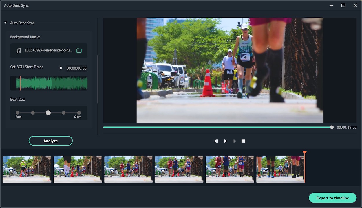 The auto beat sync feature helps you properly match the audio according to the visuals of your videos. The program will analyze your music, recognize beat points, add effects or switch view, and generate a highlight video automatically without any editing skill. Notice that this feature is available for the Windows version only.