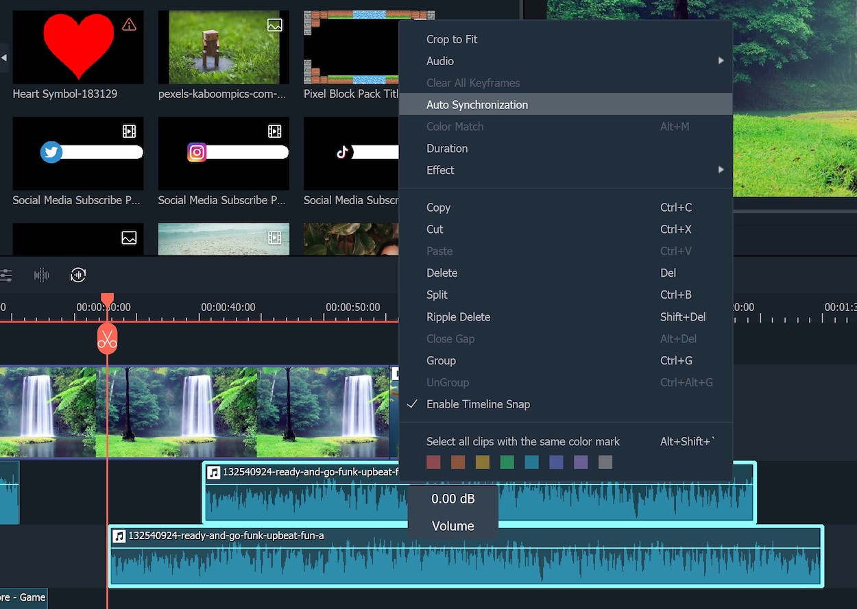 You probably record audio with both your camera and an external microphone. The Auto Synchronization feature automatically sync the audio of the 2 sources and make your video sound much clearer. You won’t have to find and drag the audio file manually in the timeline.