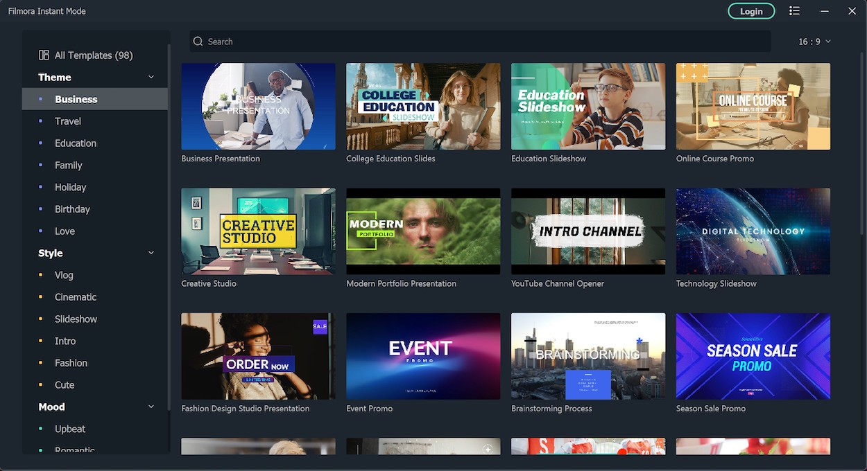 If you have no idea to get started with your footages, Filmora 11 offers a lot of templates so that you can create an amazing video without any further editing. The templates are divided into different categories like business, cinematic, or education.