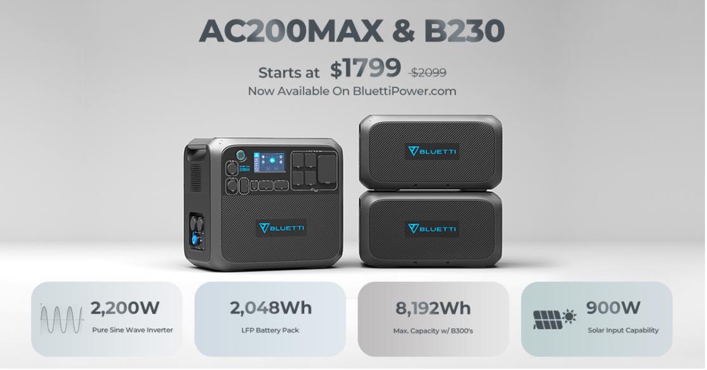 For a limited time period, BLUETTI is also offering a discount coupon on the AC200 MAX meaning it can now be bought for $1,799, that is $300 savings. Additional savings can be made by purchasing bundles.