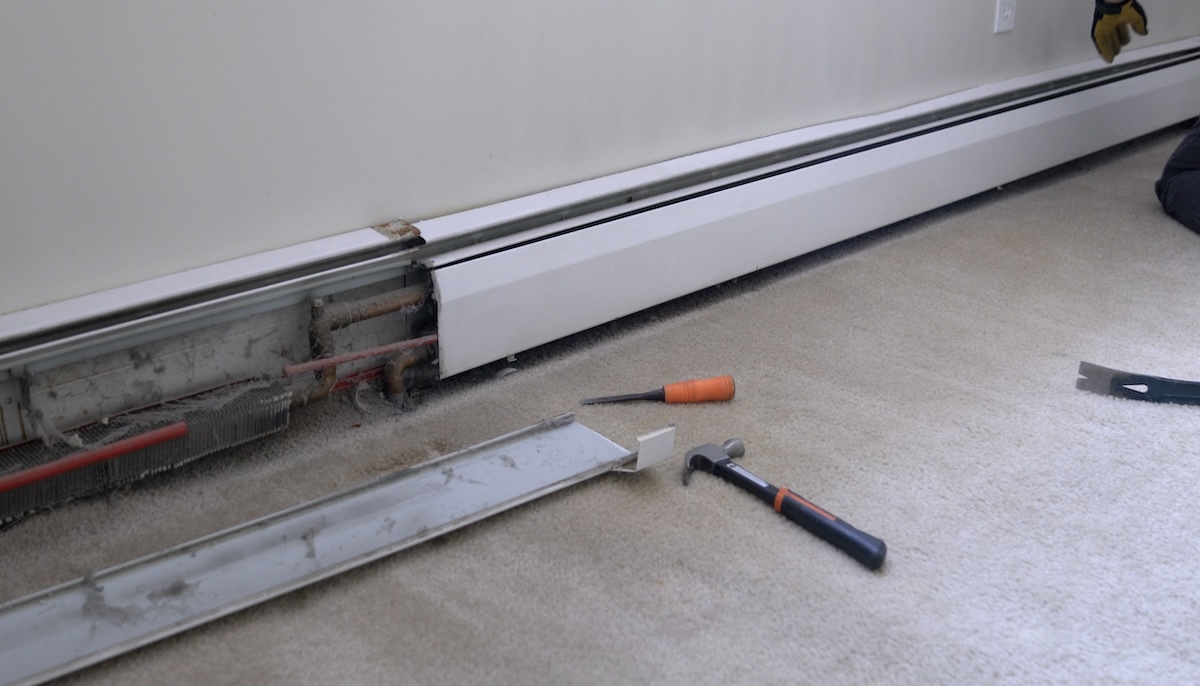 Once the pipes are cut, you can move on to removing the baseboard units themselves: