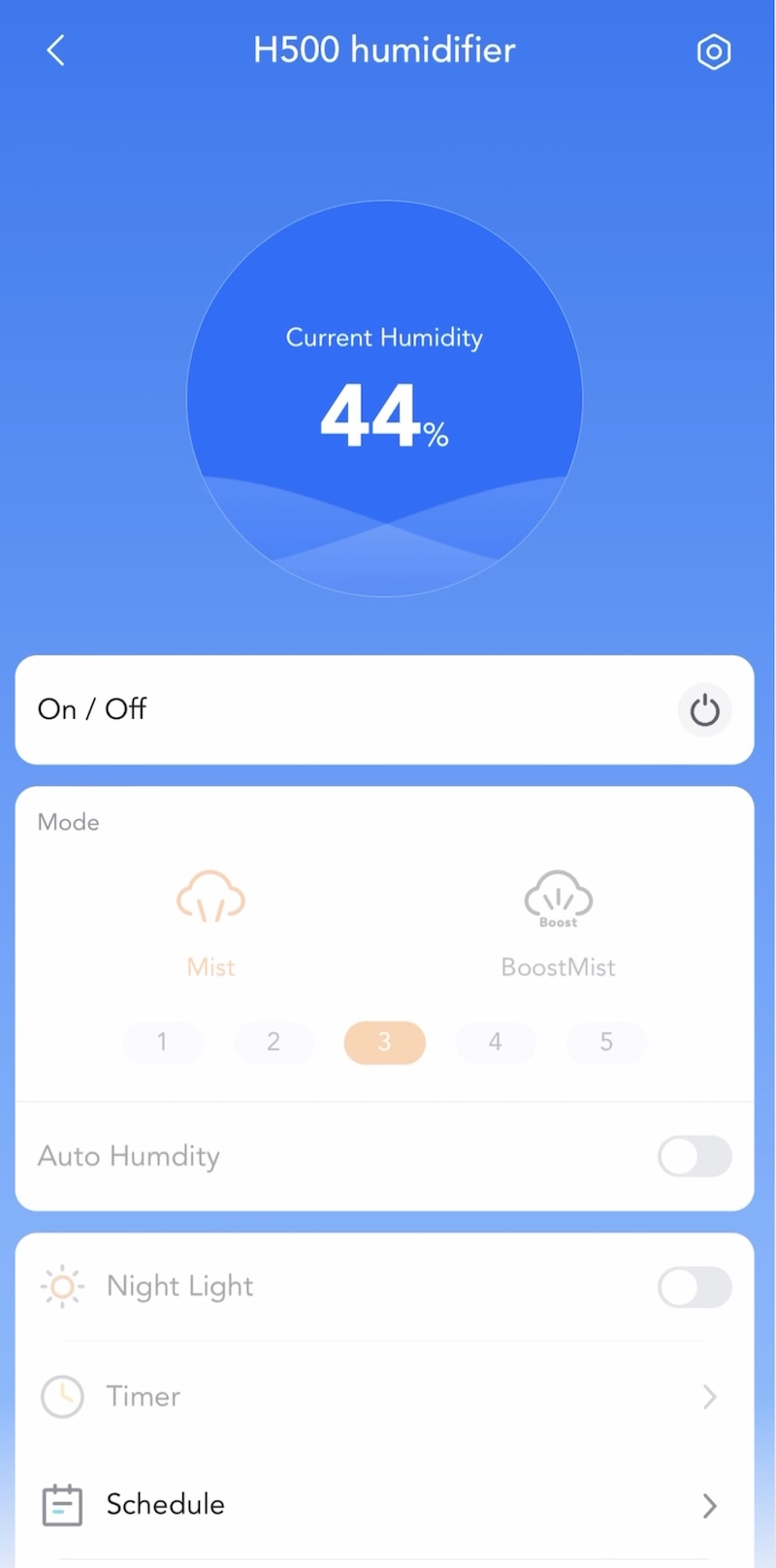 The H500 Pro has 5 mist levels and the BoostMist® mode. I often use it in the level 5 which can output about 240ml/h. In my test, I ran the humidifier for around 2.5 hours and the total weight decreased by 1.3 lbs (590ml), so the output is fairly accurate. I used it in the biggest room in my house and the humidifier manages to maintain the humidity even when I crank up the heat all over the house.