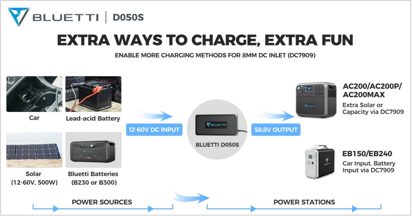 Just as its wonderous name implies, the Bluetti DC charging Enhancer (hereinafter referred to as DC Enhancer or Little Magic Box) is the enhancement tool for the DC inlets (the DC7909 port for adapter) on the Bluetti units.