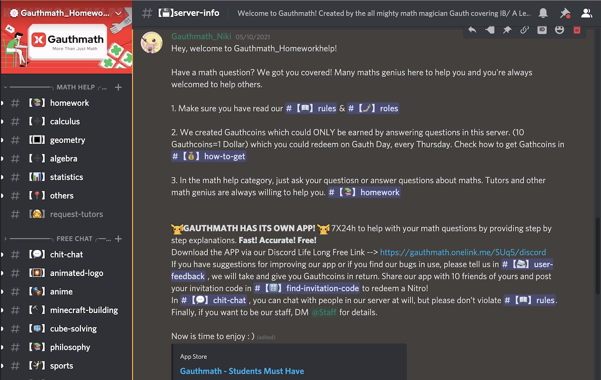 Due to Covid, many students had to stay home for classes and homework, which means that students have fewer opportunities to interact with teachers. It was also hard for parents to keep track of their kids’ homework as well. Gauthmath community acted as a free tutor that both students and parents could access during quarantine. Whenever a math question is asked, a tutor will soon show up and help. One of the tutors in the Gauthmath Discord community has been helping students with math questions since March, he commented: “I am so happy to be a tutor here as it gives me a chance to put all of the maths I have learned to use for a good cause and it’s great for the students as they know that they can always get help on any problems that they are stuck on within seconds.” The community has connected math geniuses with students who need help with math around the world, making it a sustainable math community on Discord.