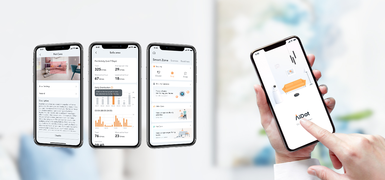 AiDot cloud service has the data analysis dashboard for deeper understanding of pets. The pet sitting feature observes your pets and understands their behaviors. It monitors movements of your pets and if it can’t see them, it will send you a message so that you could check it on them. Apart from monitoring your pet in real time, you will also understand their habits better like how many times they go to relief area, nap time, eating time, or if they go to a specific area in your house. This is a great option if you don’t want to hire a pet sitter when you are away for a short period of time. It will save a lot of time because we no longer have to observe and summarize their activities.