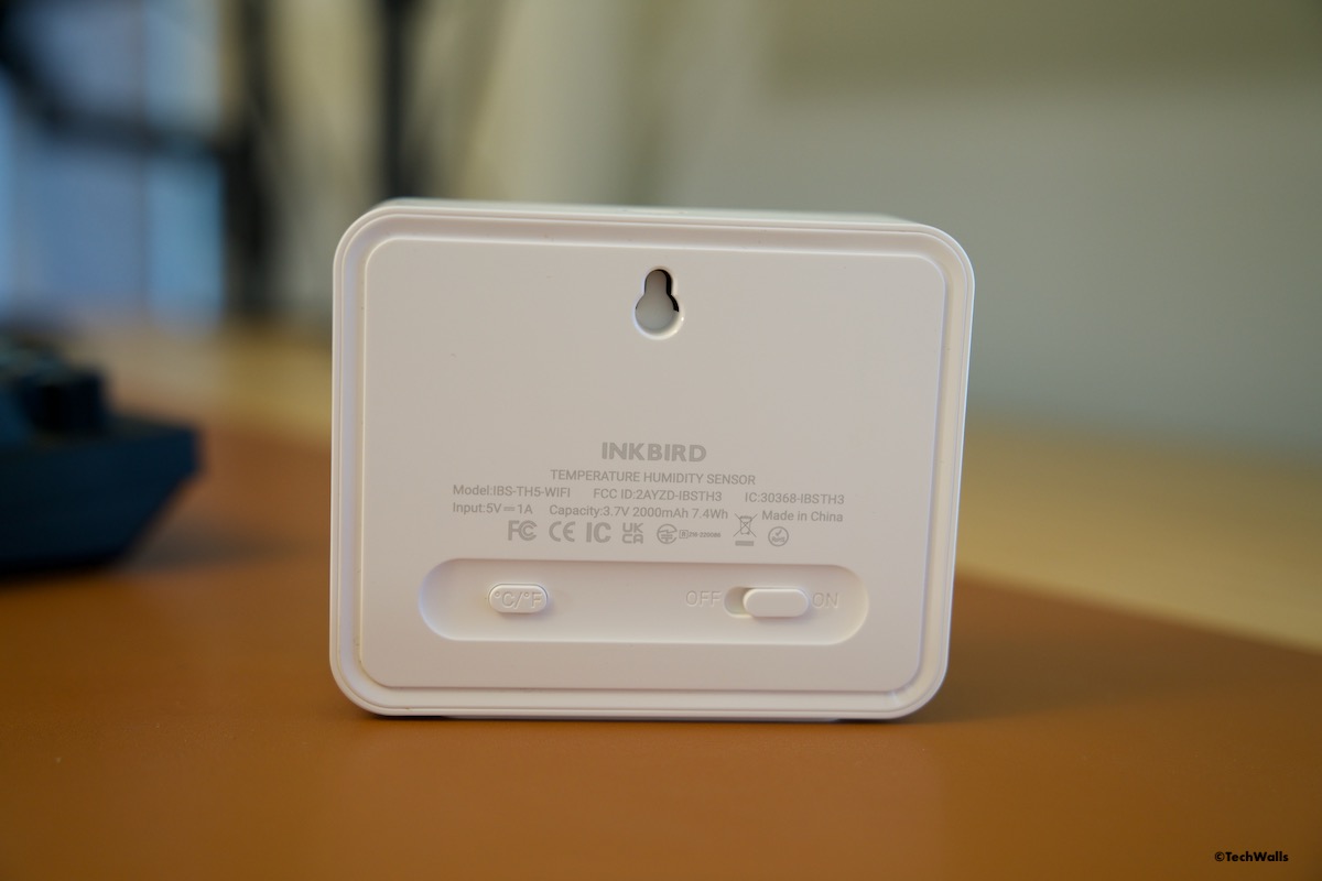 The product comes with just the INKBIRD IBS-TH5 and a USB-C cable inside the box. It has a rubber pad on the bottom and a hole on the back, so you can stand it on a desk or mount it on the wall. The manufacturer’s attention to design nuances is also noteworthy. For instance, when placed on a desk, the screen is subtly angled upwards, catering directly to your line of sight for enhanced readability. Furthermore, its all-white exterior exudes a modern aesthetic, effortlessly blending with various interior designs. Notice that it doesn’t come with a magnet on the back, so you shouldn’t try to stick it to your fridge.