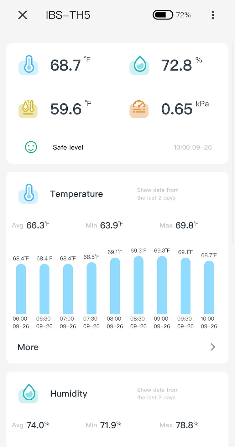 In terms of control, there are just a power switch and a °F/°C switch on the back, and a synchronization button on top of the device. When you press the button, the screen will show tomorrow’s weather condition and data will be synchronized to the app. Most of the time, I don’t need to touch any button because I only set the temperature unit once and the data is synced automatically after a specified period of time. With the IBS-TH5, all data is securely stored on the cloud, providing you with up to 2 years of historical records. The ability to export this to your email makes data analysis and tracking incredibly effortless.