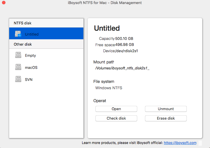 Step 1: Download, install and launch iBoysoft NTFS for Mac.