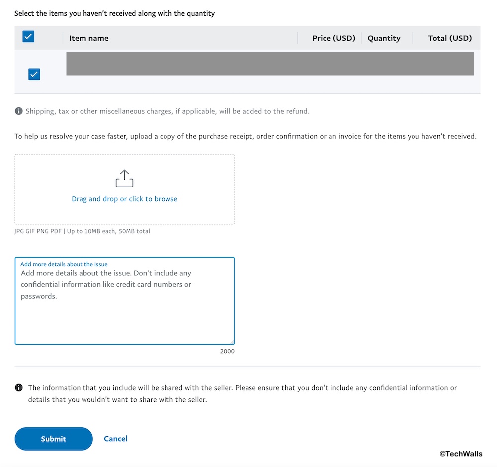 In the final step, I uploaded the eBay order confirmation and added more details on how I was scammed. After I submitted the dispute, PayPal notified me that it would take nearly a month to resolve it.