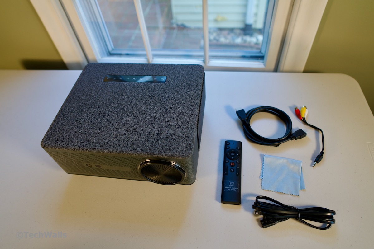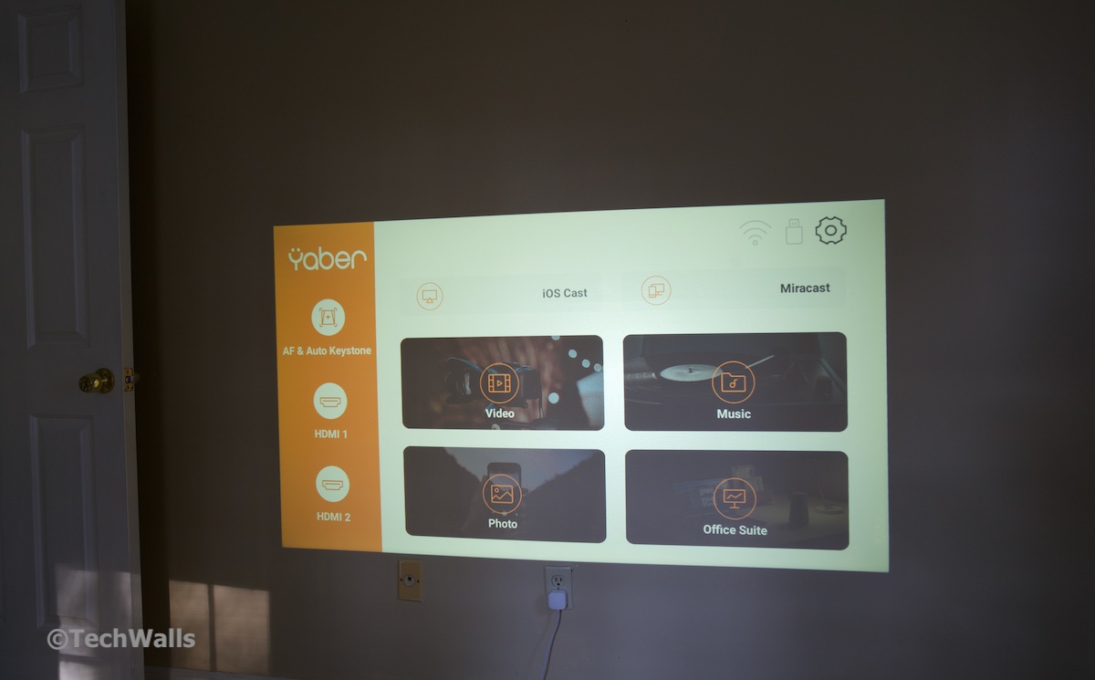 Inside the box, the YABER Ace K1 comes with the projector, a remote control, a power cord, an HDMI cable, and an AV cable. The projector doesn’t require any setup; You can just plug your laptop, game console, or TV box to the HDMI port on the back and it is ready to use. In case you want to mirror content from your iPhone, iPad or Android devices, you will need to connect the projector to your Wi-Fi network first. It supports Bluetooth 5.0 and dual-band WiFi 6, so you can stream content with almost no lag.