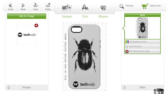 The new Skinit inkFusion phone cases are being offered mostly for Apple devices and I gave it a try for my iPhone 5S, it is the same as inkFusion iPhone 5 Case because there was no difference between the two generations. Skinit has created a very convenient Customizer tool. Basically, I just needed to choose the device, upload my images, add text, shapes, adjust size to fit the case and it’s all set. Here is the interface of the tool: