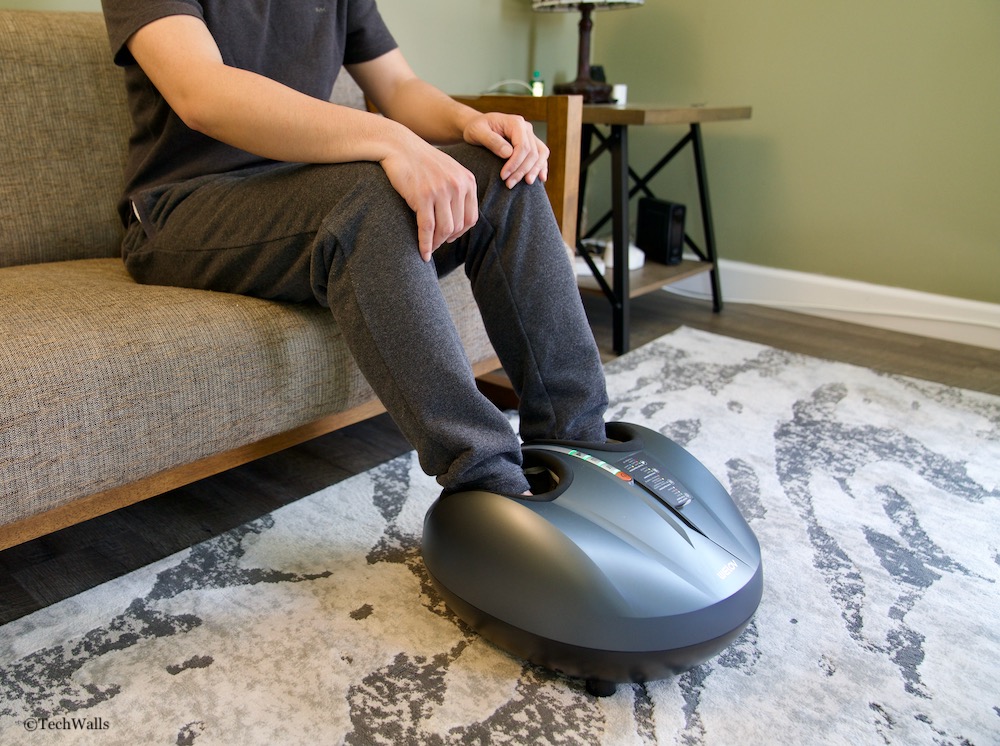 The device incorporates an intricate design that mirrors the sophisticated techniques of a professional shiatsu massage. Equipped with ergonomically designed rollers and airbags, the device mimics the sensations of a human touch, providing an authentic massage experience. The device caters to a wide range of massage needs, featuring 5 air compression intensities that can easily be adjusted based on user preference. This allows it to effectively address plantar fasciitis, neuropathy, diabetics, chronic pain, muscle tension, and other foot-related discomforts. The makers recommend starting from a low intensity to find the best fit for your comfort and relaxation.
