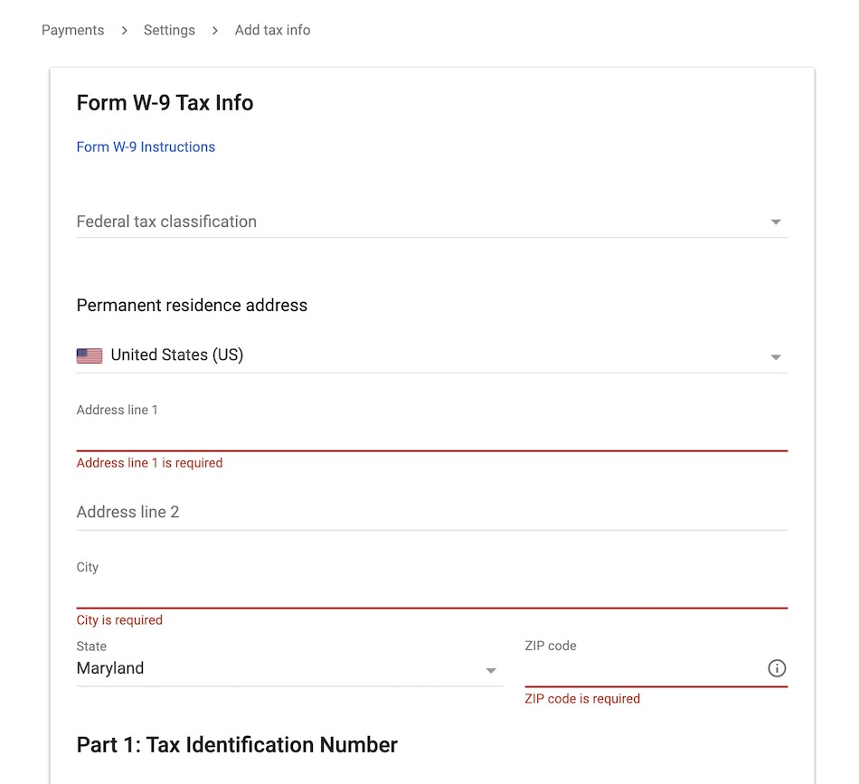 Adsense uses an electronic W-9 form which is pretty easy to fill out. You will just need to go to Payments -> Manage Settings, then click on Update Tax Info under Payments Profile. Afterwards, you confirm your U.S. citizen/resident status, fill in your name, tax identification number, and your new permanent residence address. Notice that once you finish submitting this form, you need to come back to your Payments Profile to ensure that the legal address is the same as the permanent residence address.