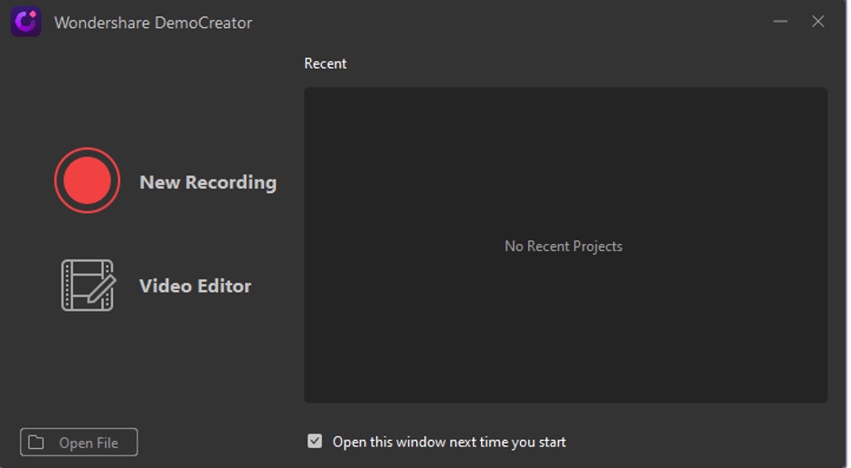 Once you have your style and script ready, let’s launch the Wondershare DemoCreator video recording software. Download the software for free. After downloading install and launch Wondershare DemoCreator. Once you see the main interface, click New Recording button.