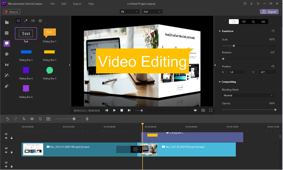 To edit, at first, go through your videos, and trim and remove any snippet you think you want to discard. When you are ready with your final result, go ahead and use the wonderful features Wondershare DemoCreator has.