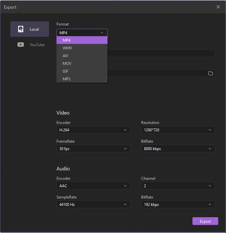 You can now produce and share your video once it’s all set and ready. Click on Export and you can export your explainer video in various formats such as MP4, MOV, MP3, WMV, AVI, GIF file formats. Wondershare DemoCreator also gives you an option to name your file and save it in your desired location to access in the future. In the export window, you can also do last-minute changes such as video resolution, frame rate, etc.