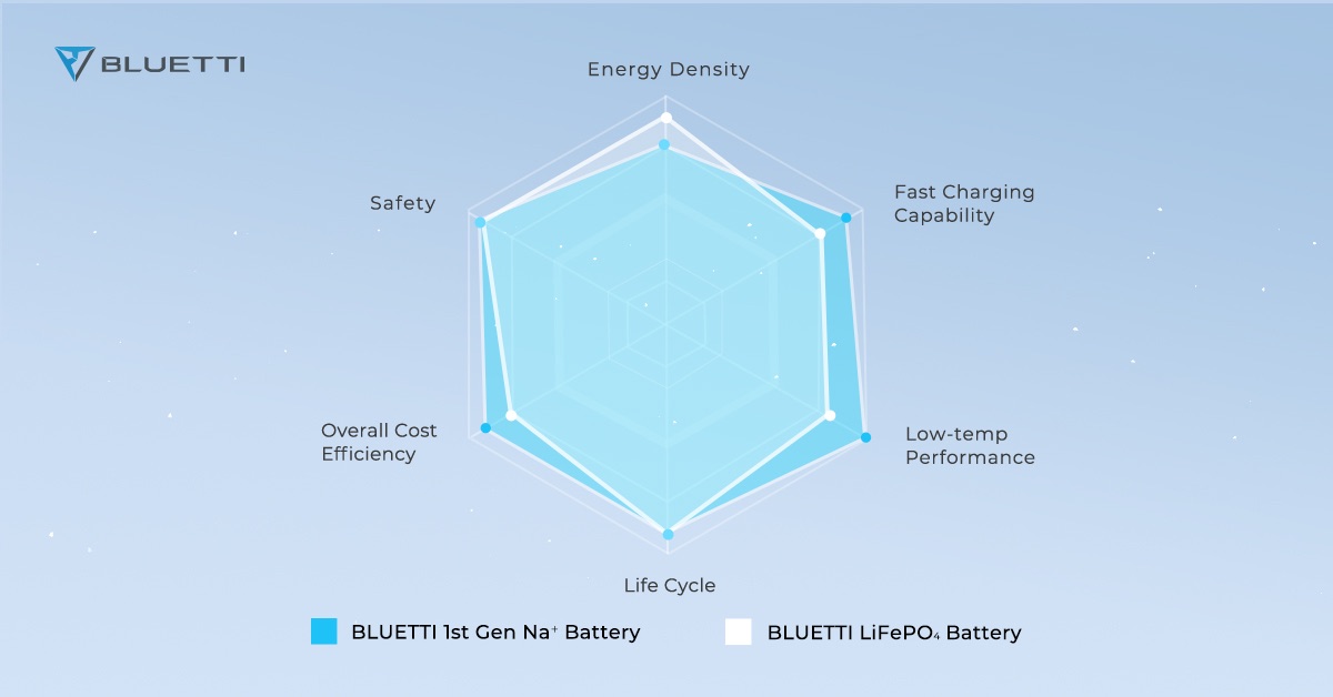 These batteries can be found in all kinds of consumer electronics or automobiles, so the huge demand has led to supply shortage and rising cost. It is estimated that the market will have a deficit of 12,000 tonnes of lithium carbonate in 2022. During the search for alternatives, sodium is considered to be the optimal solution as sodium and lithium have similar chemical properties; Moreover, the amount of sodium in Earth’s crust is 1,000 times more than lithium. Bluetti has decided to integrate the sodium-ion battery technology into their upcoming products. NA300 has just been announced as the world’s first sodium-ion solar generator, and it is released along with the new battery pack B480.