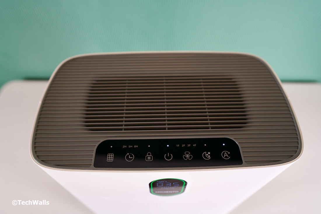 The MORNETO HY4866 for home large room is equipped with an infrared PM2.5 sensor that monitors the air quality in real time. You can see the PM2.5 number and filter life on the front display. The product doesn’t include a remote control, so you will need to adjust all the settings with touch buttons on top.