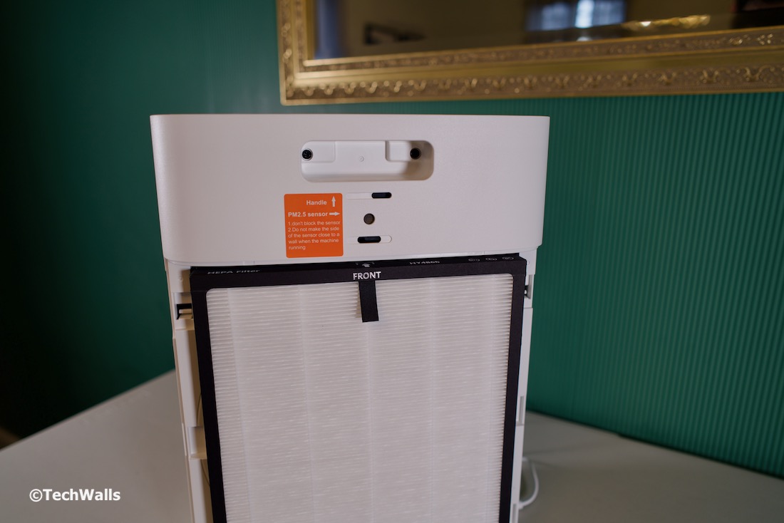 Equipped with H13 True HEPA filters and activated carbon filters on the front and back in addition to the high-efficiency double side air inlet purification system, the MORENTO can effectively remove 99.97% of air particles as small as 0.3 microns in the air. These particles include dust, smoke, pollen, hair, and odors. The company recommends replacing the filter every 6 months.