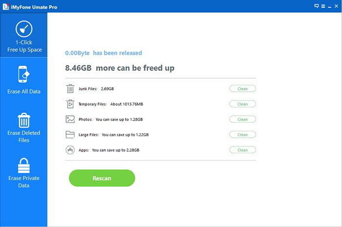 iMyFone Umate Pro can one click free up a large chunk of space on your device.