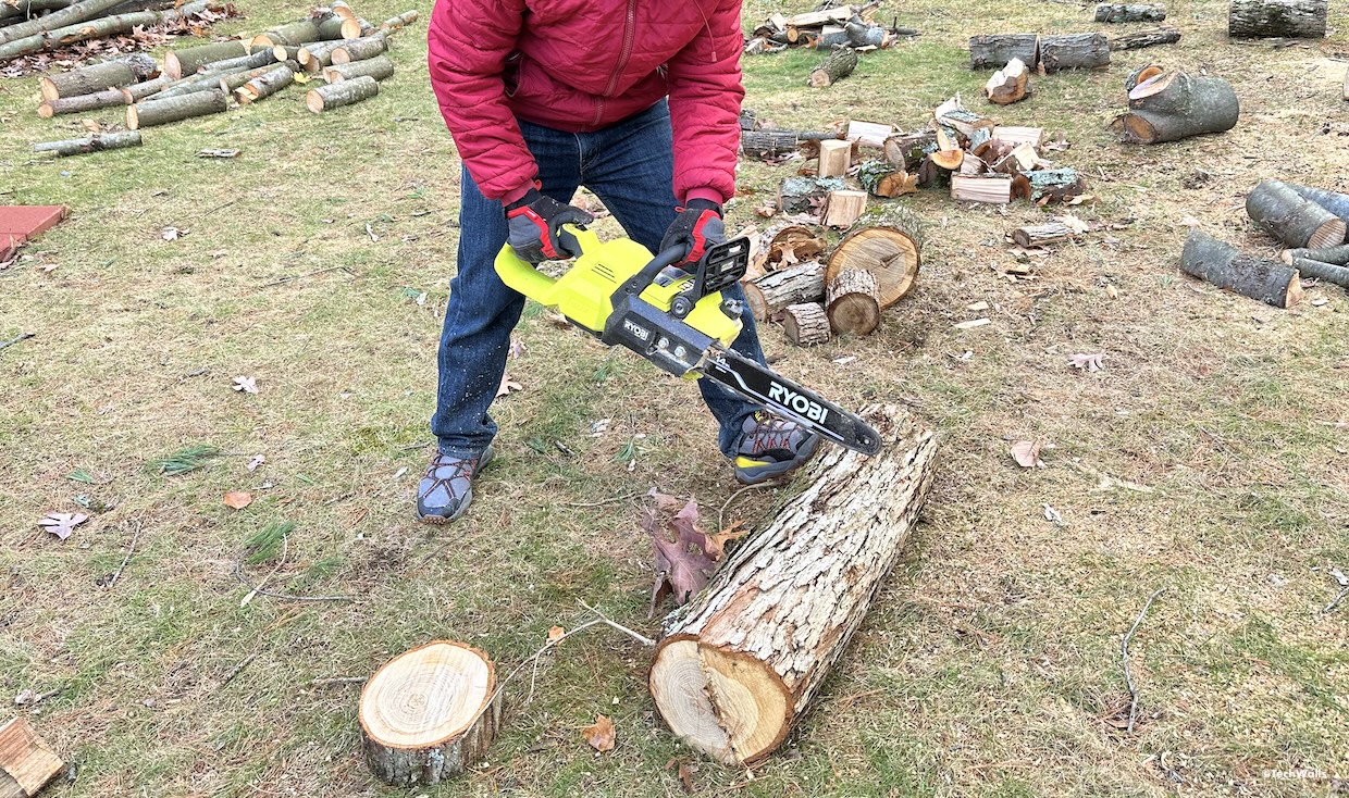I cut down some oak trees and clean up pine trees around the house; Although the RYOBI is not as powerful as gas-powered chainsaw, it still gets the jobs done and I specifically feel safer handling this small chainsaw.