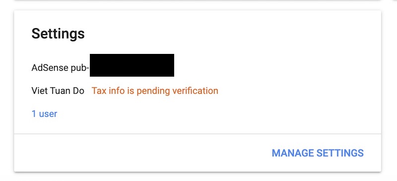 Then I saw a red bar on top of my Adsense account saying my payout wouldn’t be released until Google can verify my tax info. I did some research and many people had the same issue and they had to wait even weeks to resolve it.