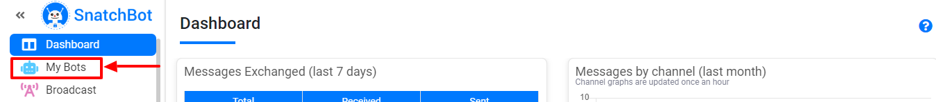 As soon as you register, your dashboard will open. Here, you can see a lot of different features, analytics, and options. To start your bot-building journey, click on the “My Bots” button on the left.