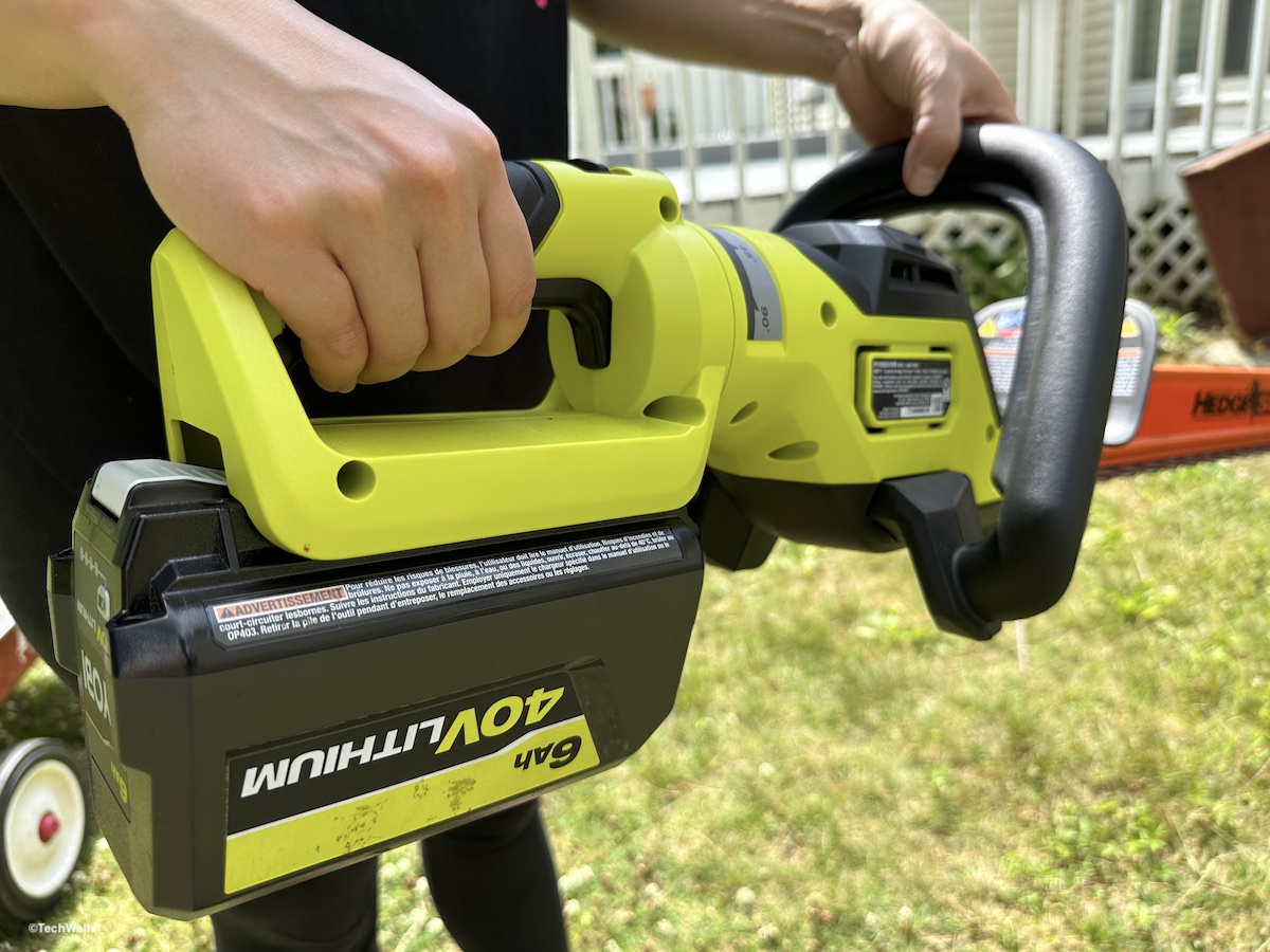 The trimmer is powered by a 40V Lithium-Ion battery, which provides commendable run-time and power. The battery life varies depending on the toughness of the hedges but generally is sufficient for small to medium-size yards. I use a 6Ah battery; I can trim about 10 bushes around my house on a single charge and still have plenty of battery left. As part of Ryobi’s 40V sharing platform, the battery can be used across a variety of other Ryobi 40V products, a convenient and cost-effective feature for those invested in the Ryobi ecosystem.