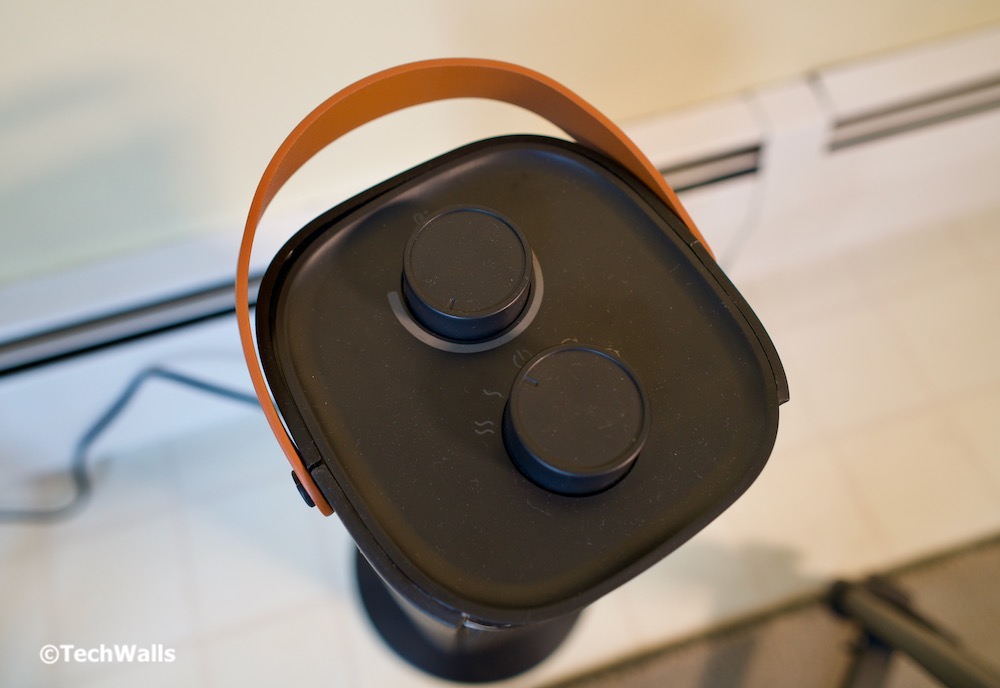 The Grelife heater requires minimal setup out of the box. Basically, I just had to screw the base into the body, then it is ready to use. It has a simple design and you won’t need to read the manual to start using it. The whole body is made of plastic with metal front grille and a leather handle. The handle comes extremely useful as I move the heater around a lot.
