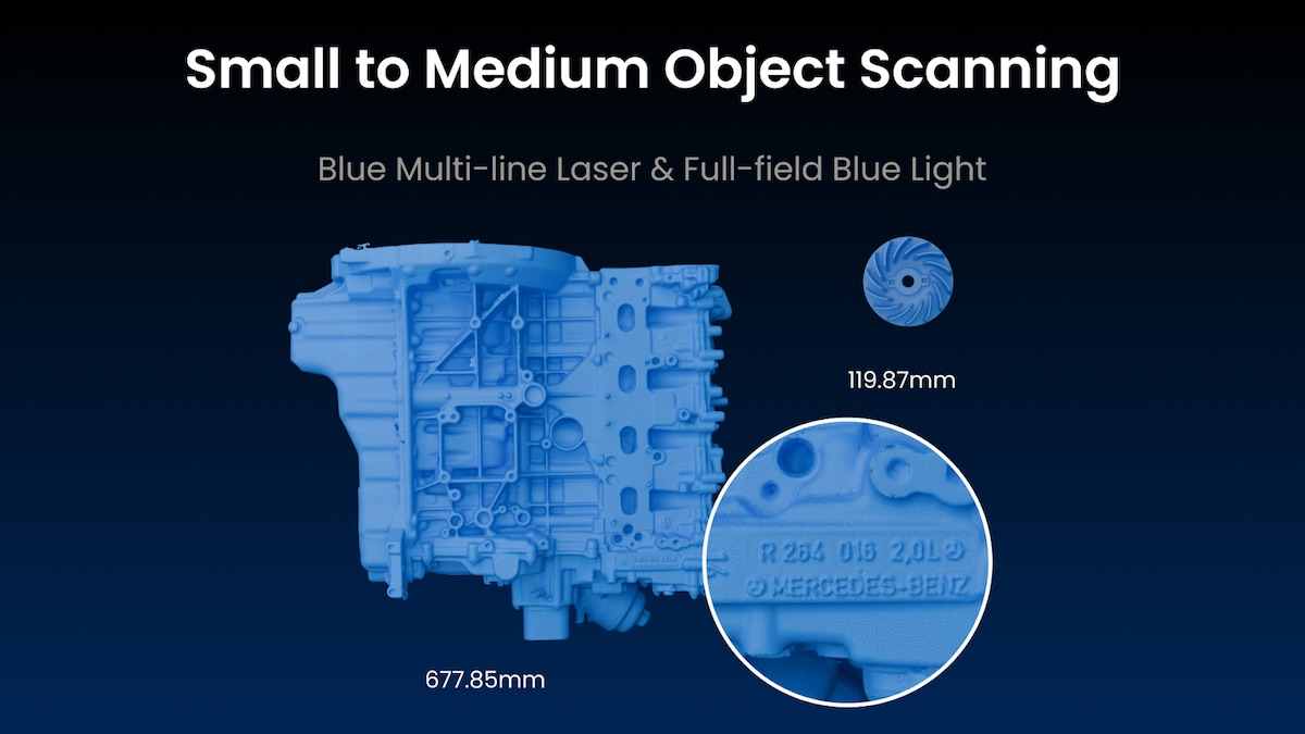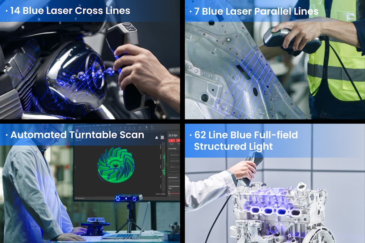 - 62-line blue Full-field structured light scanning mode delivers incredible efficiency, capturing up to 7 million points per second, ensuring that even the smallest details are not missed.
