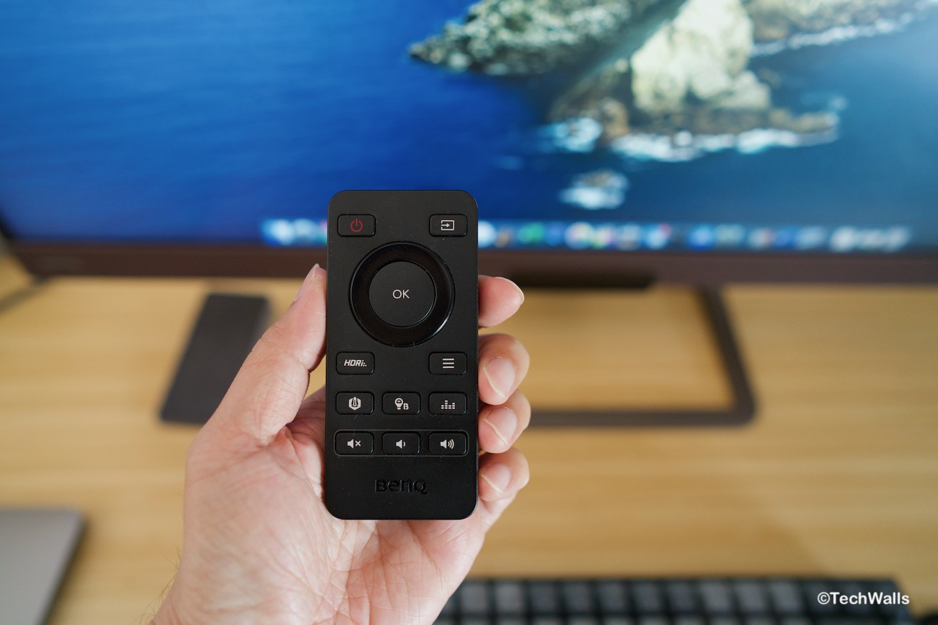 To keep the front of the monitor clean and simple, BenQ hid all control buttons on the back. Besides, we have a remote control which is very convenient to power on/off, adjust volume or picture settings. In fact, I’ve never touched buttons on the back; I only use the volume wheel below the screen since I can adjust volume much quicker.